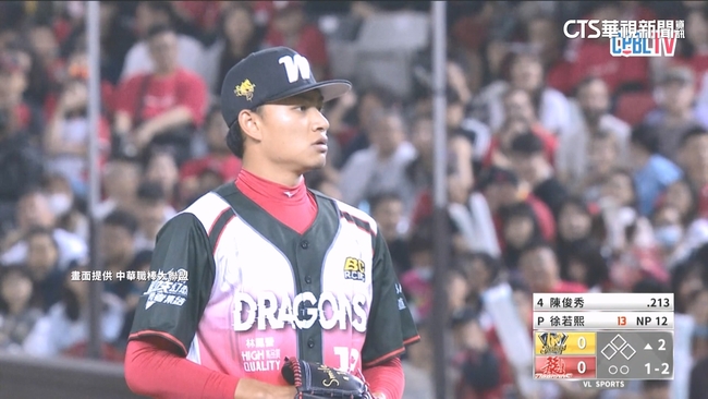 雖然被陳俊秀敲出安打,但他也立刻展現K功化解危機,徐若熙總計投了5局飆出8K沒有失分,退場時還帶著1分領先,可惜今晚的牛棚變成了火牛棚,賽事主播說:「(詹子賢)這個系列戰首次擁有打擊機會,這球打在左外野方向,還在飛,有機會,全壘打。」