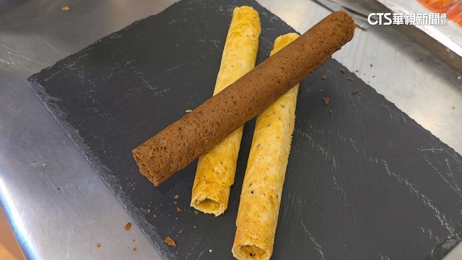 讓新庄剛志回味到,想帶10多盒回日本分享,這細細長長的是哪款餅乾,現在答案揭曉了,就是這款來自嘉義縣,民雄鄉烘焙坊的「厚蛋捲」。蛋捲業者溫小姐說:「單一支的厚度跟重量是一般蛋捲的兩倍多。」