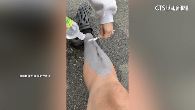 秀出右腳小腿,長長一道傷痕。這位參賽選手抱怨,昨(26)日划完當他要跨上岸時,碼頭卻突然漂走,導致他右腿被石頭刮傷,這時注意到下水碼頭,只有用一條繩子固定,讓他忍不住嘆氣,很多細節應該先預防,而非事後補救。畢竟划船在台灣,也已經舉辦三十年了。