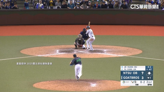 賽事主播說:「揮棒落空,三振出局。」揮棒落空再見三振,2025雙北世壯運最受關注的一場比賽,棒球競賽組決賽由周思齊率領的山羊兄弟隊,在台北大巨蛋對上國體大OB隊,賽事主播VS.球評說:「這棒敲起來,靠近邊線,(哇,思齊)周董的美技,來不來得及回去呀,來不及(雙殺)。」「周董」周思齊在左外野的美技滑接,再接力回傳到一壘抓到漂亮的雙殺,擁有多位退役選手的山羊兄弟隊,率先取得2分領先氣勢一路壓著國體大OB打,但卻在第六局風雲變色。