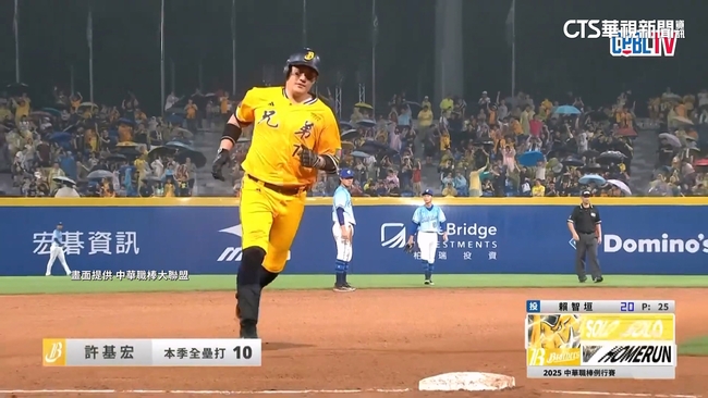 許基宏前兩打席,都從悍將左投陳仕朋手中敲出兩分砲,第3打席局面對賴智元,又把球,掃到中右外野牆外。這三發全壘打也是他最近6場比賽,轟出的第7轟,他也是本季第一位敲出10轟的本土選手,目前在全壘打榜上,僅次於台鋼魔鷹的13轟。