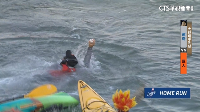 美國職棒看華視!洛杉磯道奇球星大谷翔平,今(12)日再度開轟,敲出本季第32支全壘打,這一球直接飛越球場,落進舊金山巨人主場甲骨文球場右外野的麥考維灣。轉播畫面也捕捉到,現場有球迷為了撿這顆大谷的全壘打球,直接跳下船搶球,最後成功高舉戰利品炫耀,而另一艘船上的球迷,甚至因此翻船。
