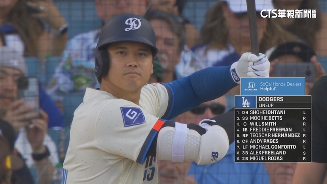道奇、教士的強強對決,同時也是國聯西區的龍頭保衛戰,大谷翔平首打席先用選球眼,跟隊友們一起保送、保送、保送,Teoscar Hernandez再用高飛犧牲打,把OHTANI桑送回家。華視賽事主播陳亞理VS.球評鄭又嘉說:「大谷翔平,(要拚了),Tatis這個球,結果傳偏了。」