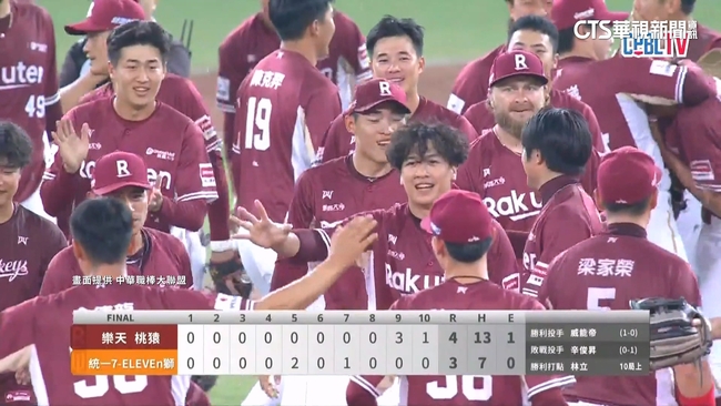 氣勢早就已經被帶起來的樂天,代打的林立敲安建功,以1分的領先獲得關門機會,雖然在10局下被攻佔一壘,但還是守住了勝利。賽事主播說:「滾地球在二壘方向,這場比賽最後畫下了句點,樂天桃猿,哇,他們寫下了不可思議的紀錄。」