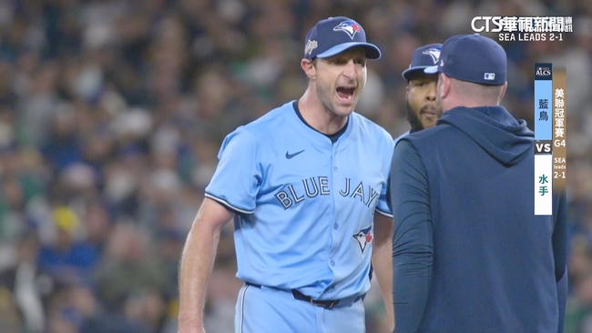 美聯冠軍賽來到第4戰,多倫多藍鳥41歲塞揚強投薛哲(Max Scherzer),先發主投5.2局僅失1分,更對著總教練怒吼展現拚戰決心;加上「楓葉軍」打線全場打出11支安打,包括兩發全壘打,最終以8比2大勝西雅圖水手,雙方系列賽扳成2比2平手。