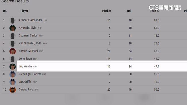 林維恩在本屆經典賽,投了34顆球,有16顆是四縫線速球,平均轉速高達2505轉,高居世界第7,更是目前在經典賽,直球轉速唯一突破2500轉的亞洲投手。而就第二份排名來看,他僅次於墨西哥隊的Alexander Armenta,成為全球目前,「左投手」轉速第2高的球員!