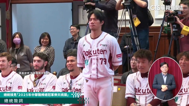 和樂天女孩熱情擊掌,總統賴清德26日在總統府內,接見2025年中華職棒總冠軍樂天桃猿隊,但身為超級獅迷的賴總統,在致詞時特別點名了他。統一獅迷賴清德說:「林智平,請站起來。」樂天老將林智平靦腆地站起身來,原來總統是為了這件事。