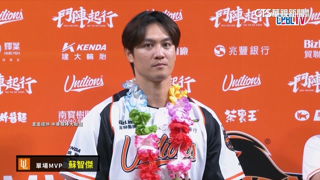 主持人:「蘇智傑,一起來。」統一獅終場以3比1,在滿場23500名球迷的見證下,成功留下亞太球場的第一勝。統一7-ELEVEn獅球員蘇智傑說:「感謝今天(29日)到場的所有球迷,那也希望每場都是這麼多人,謝謝。」