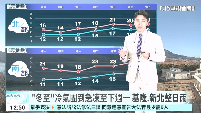 受冷氣團影響各地氣溫偏低 局部10度以下機率