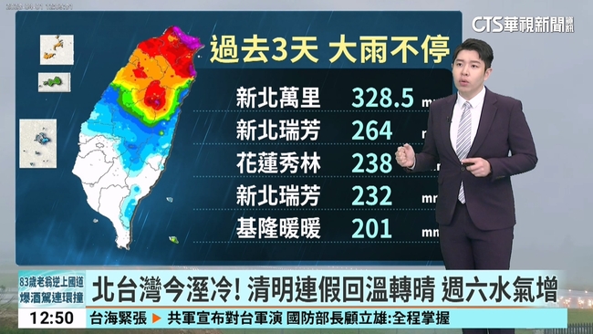 今(1)日受大陸冷氣團影響加上華南雲雨區東移,北部、東北部及東部天氣濕冷,其他地區早晚亦冷;白天北部及東北部預測高溫約15、16度,中部及花東約20至22度,南部高溫仍可達27度,離島澎湖全天17至19度,金門13至18度,馬祖13至15度;在天氣方面,由於華南雲雨區東移,北部、東半部地區、恆春半島、中南部山區有局部短暫雨,中部地區亦有零星短暫雨,其他地區為多雲,但雨勢預估在下半天可趨緩。