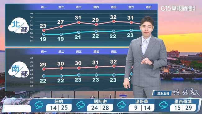 明(29)日各地為晴到多雲、穩定的天氣,僅東半部地區及恆春半島有零星降雨機率,而午後在西半部山區也有些零星短暫陣雨,隨著東北季風增強,各地早晚稍涼,北台灣低溫為19、20度,其他地區為22至24度,而白天高溫北部、東半部為26到28度,中南部為29至31度,感受較溫暖舒適。