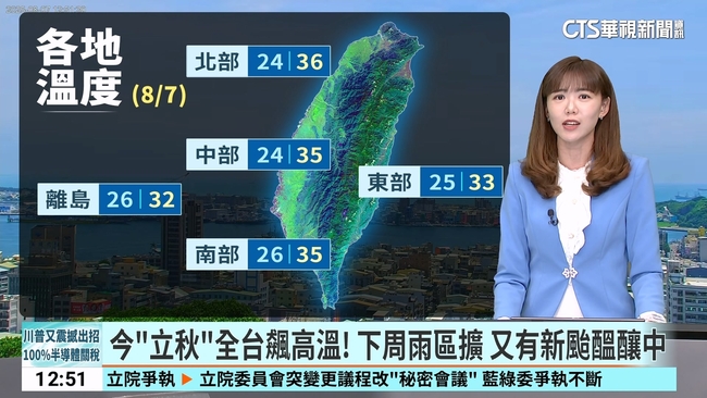 今日立秋各地大多為多雲到晴 高屏地區及各山區午後雷陣雨