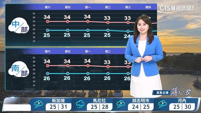 明(16)日各地大多晴朗穩定的天氣,環境吹偏東風,迎風面基隆北海岸、東北部、東南部及恆春半島有零星短暫陣雨,午後雲林以南地區、中部以北近山區平地及其他山區有局部短暫雷陣雨,嘉義以南地區有局部大雨發生的機率,請留意午後天氣變化;氣溫方面,東半部高溫約31至33度,西半部普遍可以來到34至35度,尤其桃竹地區及南部近山區有36度左右高溫,感受高溫炎熱,中午前後紫外線偏強,甚至來到危險等級,外出請注意做好防曬並多補充水分。