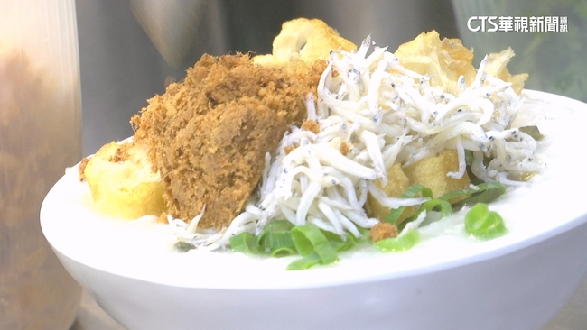 大鍋裡不斷冒出熱氣,盛1碗白粥放上薑絲綠蔥油條還有滿滿的吻仔魚,天氣冷颼颼,許多民眾一大早就到鹹粥店報到,想吃碗熱食暖暖胃,顧客說:「今天比較冷,然後冷就想吃一些暖胃的東西,可是又不適合說吃太多,那我想說吃個粥剛剛好。」