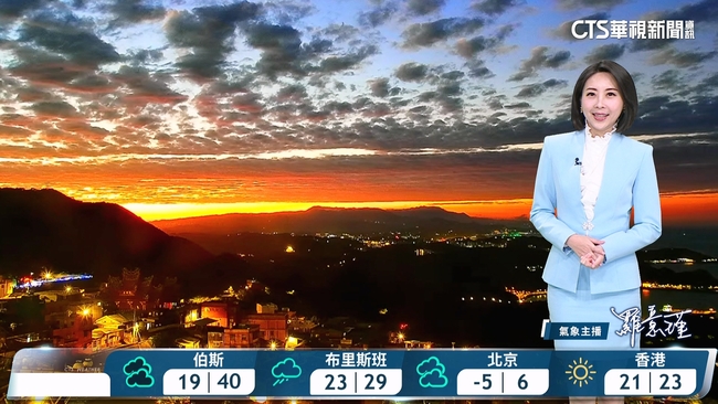 離島天氣:澎湖多雲,19至22度,金門晴時多雲,16至22度,馬祖晴時多雲,13至17度。