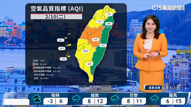 離島天氣,澎湖晴時多雲,15至18度,金門晴時多雲,11至18度,馬祖多雲短暫雨,9至14度。